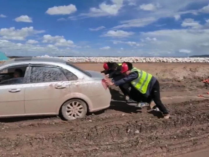 子阳把这段经历发布在社交平台上,引发网友点赞,“是在高原修路的基建狂魔,更是仗义出手的热心肠。”