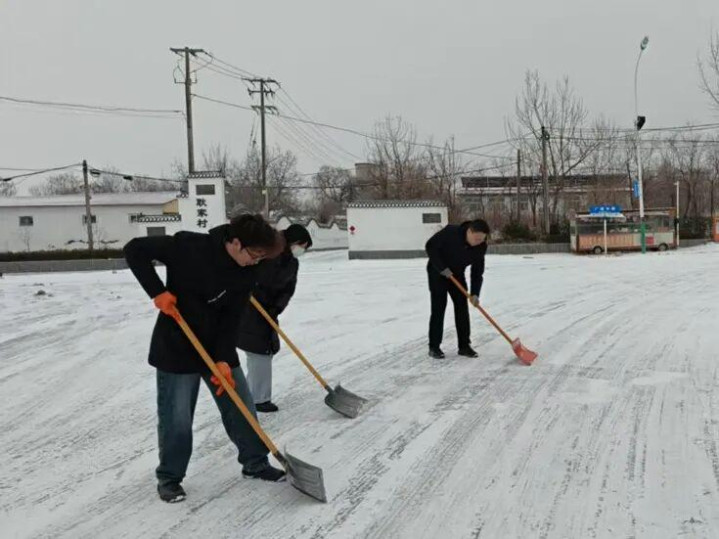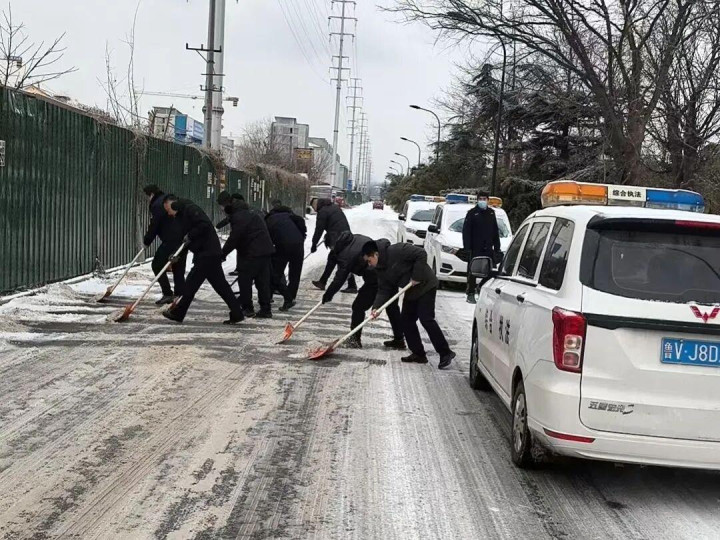 各村、物业企业、辖区企业迅速行动,自觉加入清雪除冰队伍,对坡道、急弯陡坡、小区地下车库出路口、厂区门口等重点区域开展集中清理,他们分工明确、密切配合,齐心协力共同为守护安全出行拼搏奋战。
