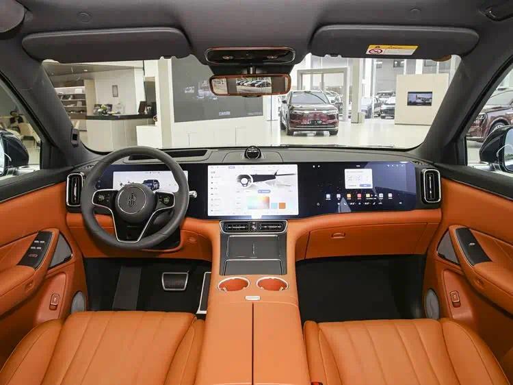 两款新车的内饰设计各有侧重,但都兼顾了舒适与科技感。全新问界M7延续了家族经典的环抱式座舱设计,内饰配色选择丰富,有星云红、韶华杏、赤茶橘与松露棕四款可供挑选,能适配不同用户的喜好。车内配备了16.1英寸3K中控屏、10.25英寸副驾屏以及液晶仪表屏,其中副驾屏采用了专属UX设计,操作起来更加便捷。二排还配备了顶置17.3英寸后排娱乐屏,后排乘客的乘坐体验得到提升。问界M8的内饰则采用三块贯穿屏设计,由12.3英寸液晶仪表屏、15.6英寸中控大屏和16英寸副驾娱乐屏组成,搭配HarmonyOS 4智能座舱,系统流畅度和交互体验都有不错的表现。